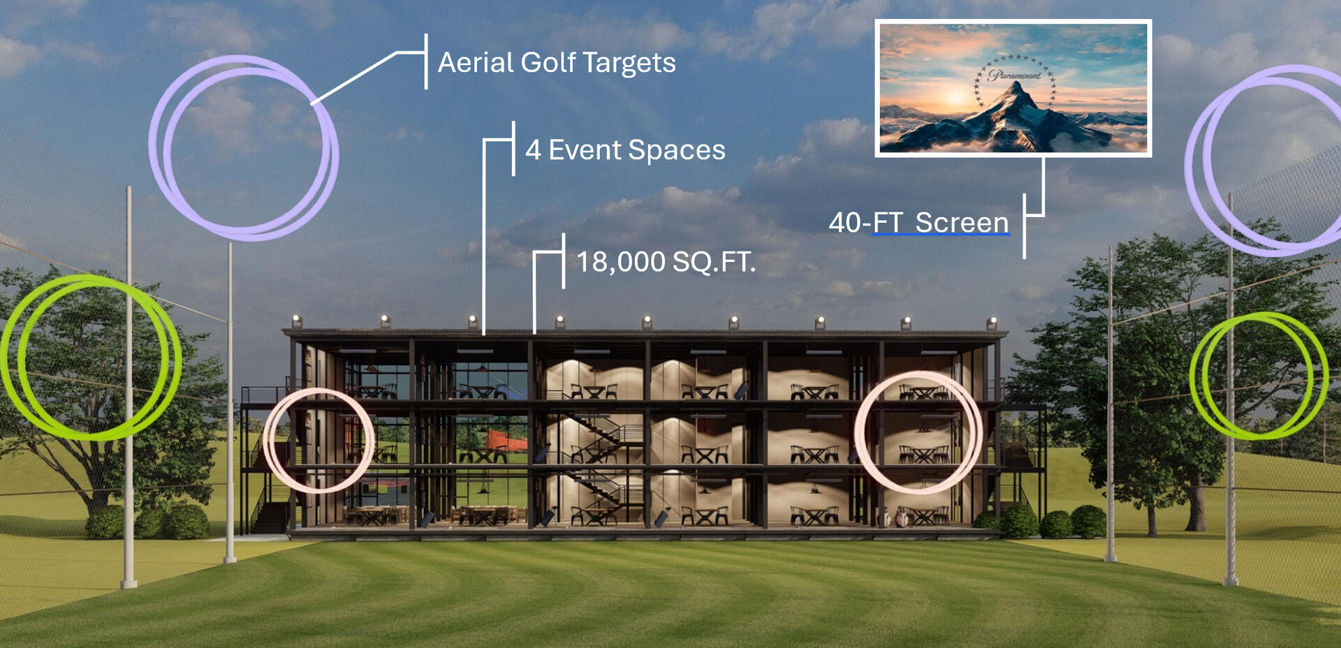 • A dramatic twist on the golf experience, using interactive aerial targets, and full-service food and beverage.